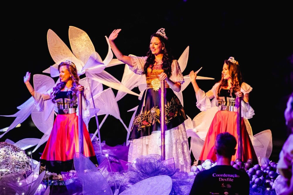 Com o primeiro carro trazendo a Rainha da Festa da Uva 2024, Lizandra Chinali, e as princesas Eduarda Ruzzarin Menezes e Letícia de Carvalho teve início, na noite desta quinta-feira (15/02), o primeiro desfile cênico da 34ª Festa Nacional da Uva. Com os olhos vidrados e repletos de admiração, o público marcou presença prestigiando cerca de 1,3 mil participantes entre artistas e figurantes que desfilaram enchendo a rua Sinimbu de cor, alegria e movimento.