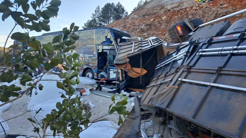 Uma colisão na ERS-122 envolvendo um ônibus de turismo e uma carreta Scania ocorreu na manhã desta sexta-feira (01), por volta das 5h, no km 83, bairro Pedancino, em Caxias do Sul.