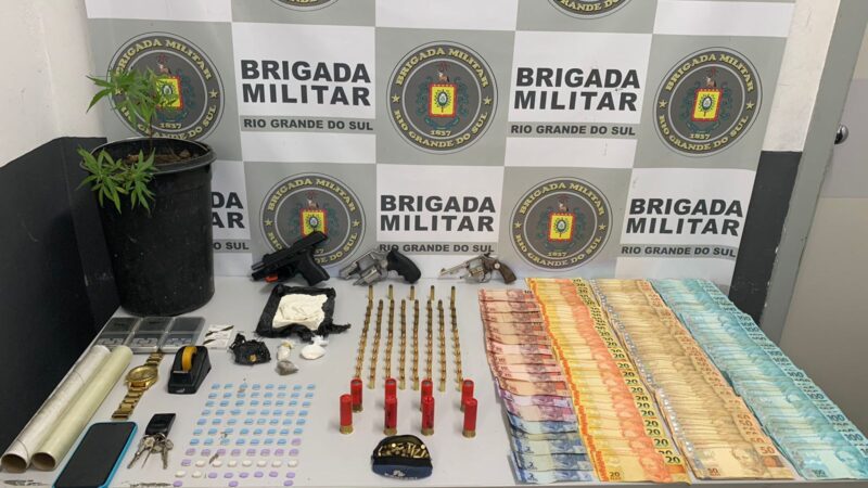 Na ação foram apreendidos porções de maconha, cocaína, crack, ecstasy, material de embalagem, 195 munições de diversos calibres, um revólver calibre.38, um revólver calibre.22, uma pistola calibre.380, balanças de precisão e mais de R$ 15 mil.