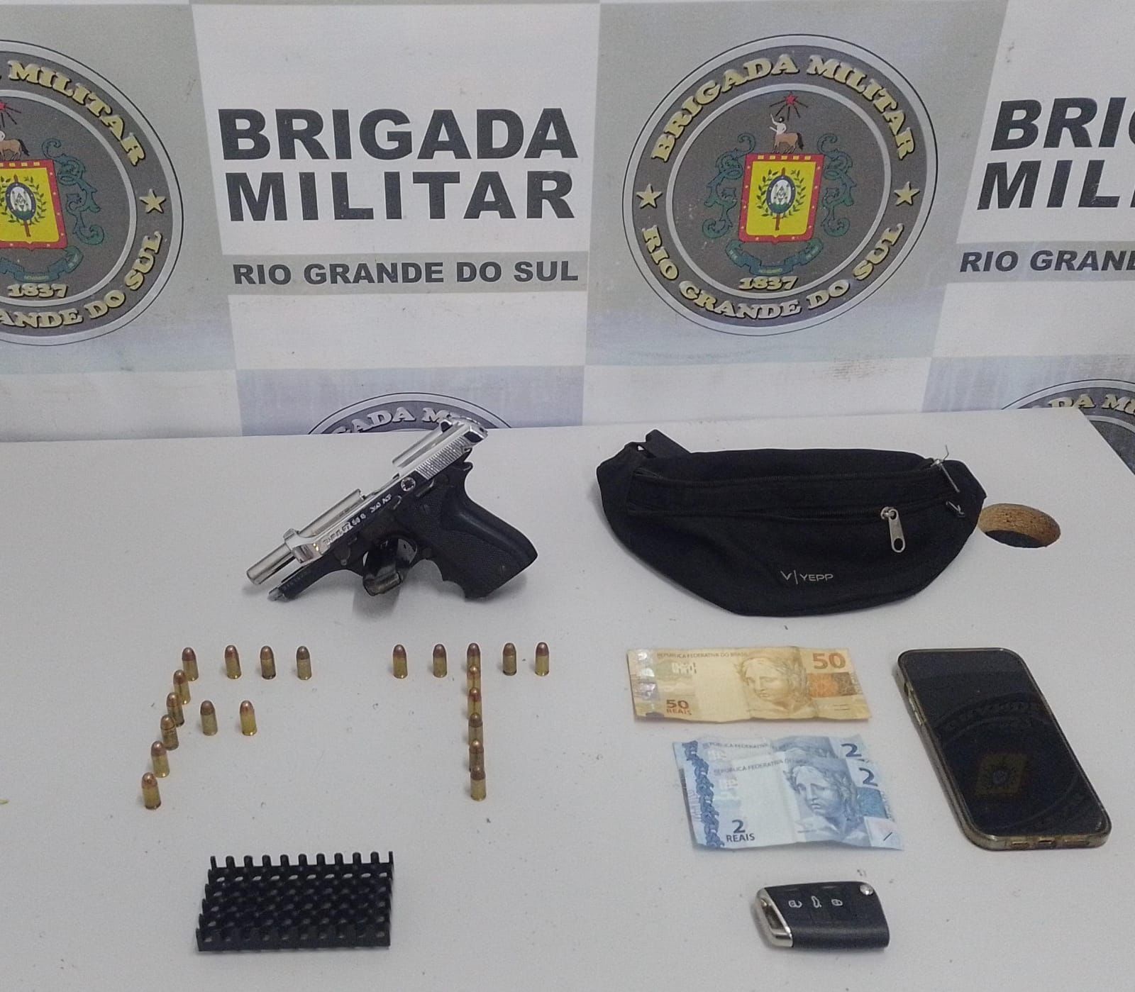 Na madrugada de sábado (6), a Brigada Militar, por meio do 12º BPM, prendeu dois homens, de 20 e 22 anos, por porte ilegal de arma de fogo no bairro São Caetano, em Caxias do Sul. A ação ocorreu por volta da 1h, quando uma equipe da BM abordou um veículo Renault Sandero. Durante a ação, foi localizada uma pistola Taurus calibre .380, um carregador e 21 munições, além de um celular. Os presos, que possuem antecedentes criminais, foram conduzidos à Delegacia de Polícia para os devidos registros.
