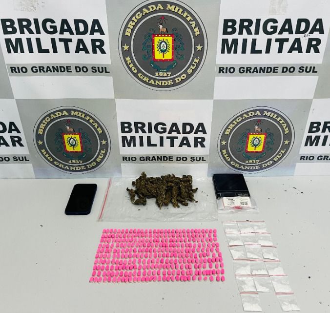 Já no bairro Cristo Redentor, um homem de 25 anos tentou fugir da abordagem policial, mas foi detido. Durante a revista, os agentes encontraram um tablete de maconha (550g), 55 gramas de cocaína, dez pedras de crack, um cigarro de maconha, um celular e um esmurrugador.