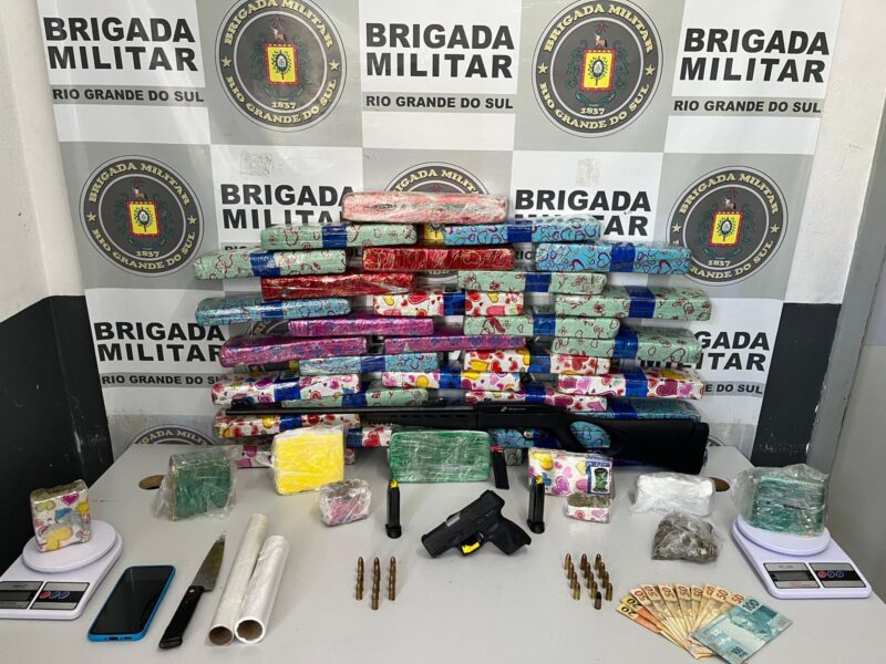 A prisão ocorreu por volta das 12h30, após equipes da Brigada Militar serem acionadas pelo COPOM para atender uma denúncia de briga de casal. Durante a ocorrência, os policiais localizaram grande quantidade de drogas e armamento no local.