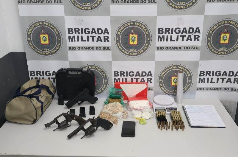 Além do indivíduo, também foram apreendidos dois revólveres Taurus .38, um Simulacro de Glock, um Carregador Bersa 9mm, um Carregador Glock .380, um Carregador simulacro, 86 munições Cal .38, 15 munições Cal .380, um veículo ford fiesta preto, cinco porções de Crack (877g), cinco porções de Cocaína(1.565g), uma balança de precisão, uma maleta de Glock, um celular motorola azul, um celular samsung azul, uma bolsa bege e um caderno de anotações.