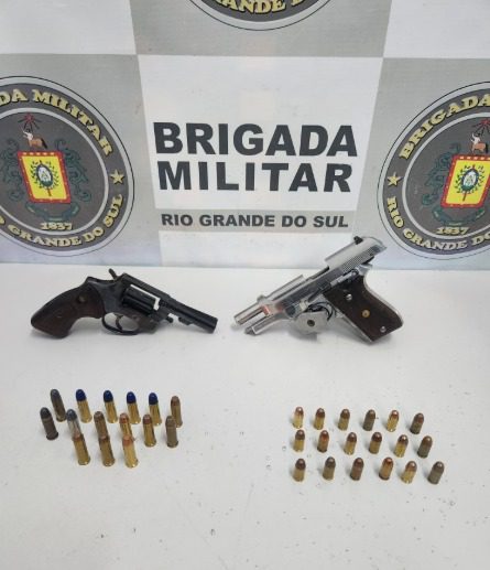 A ação ocorreu por volta das 16h30. Foram localizados apreendidos foi um revólver calibre .38 (com numeração suprimida) e uma pistola calibre .380.
