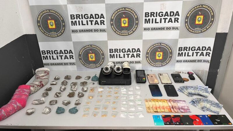 Durante a ação, foram apreendidas 24 porções de maconha, 23 porções de crack, 19 porções de cocaína e uma porção de haxixe. Os policiais também localizaram três câmeras de monitoramento, um veículo Ford Focus, uma máquina de cartão, um aparelho DVR, cinco celulares, oito cartões bancários e R$ 246,00.