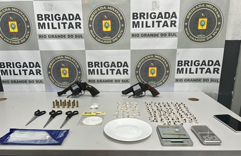 Brigada Militar prende três homens por porte ilegal de arma de fogo e tráfico de drogas em Caxias do Sul