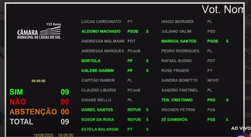 Após as falas dos parlamentares, o presidente da Câmara, vereador Lucas Caregnato (PT) abriu o momento de votação, instante em que foram totalizados nove votos dos vereadores. Alguns parlamentares se retiraram do plenário no momento aberto para votação e a definição da autorização ou não do subsídio foi prorrogada automaticamente por falta de quórum. Isto é, para um projeto ser aprovado ou rejeitado na Casa é necessária a presença em plenário de, no mínimo, 12 vereadores, o que não aconteceu. Agora, o projeto retorna para votação em uma nova sessão, podendo ser ordinária ou extraordinária, conforme convocação do presidente da Câmara.