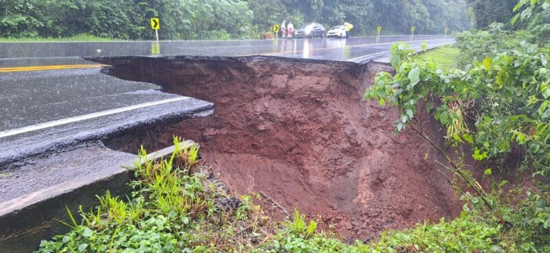 ▶️ ERS 130, KM 37/ Venâncio Aires – Bloqueio total, erosão da pista.
