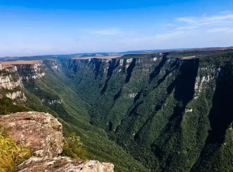 O Corpo de Bombeiros foi acionado no início da tarde para resgate da criança que caiu no Cânion Fortaleza. Informações iniciais apontam que a menina, de 11 anos, seria do Paraná e estava com os pais no alto de mirante, de onde teria caído. O cânion fica dentro do Parque Nacional da Serra Geral.