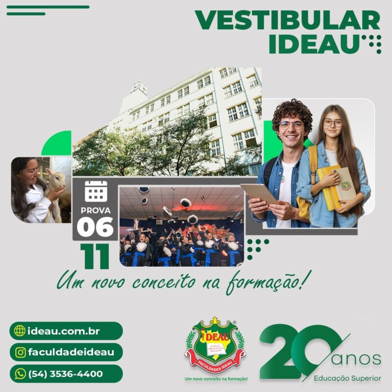 A Faculdade IDEAU de Caxias do Sul está com as inscrições abertas para o Vestibular 2026, e essa pode ser a sua chance de transformar o sonho da graduação em realidade! Com cursos noturnos, nas modalidades presencial e EAD, a IDEAU oferece toda a flexibilidade que o estudante precisa para conciliar estudos, trabalho e vida pessoal, sem abrir mão da qualidade de ensino que é marca registrada da instituição.