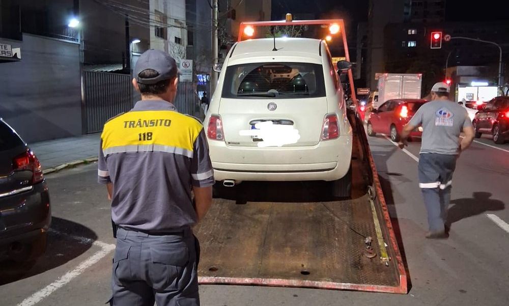 Na noite de sexta-feira (19), a Fiscalização de Trânsito da Secretaria de Trânsito, Transportes e Mobilidade recolheu um veículo Fiat na área da Estação Férrea, em São Pelegrino.