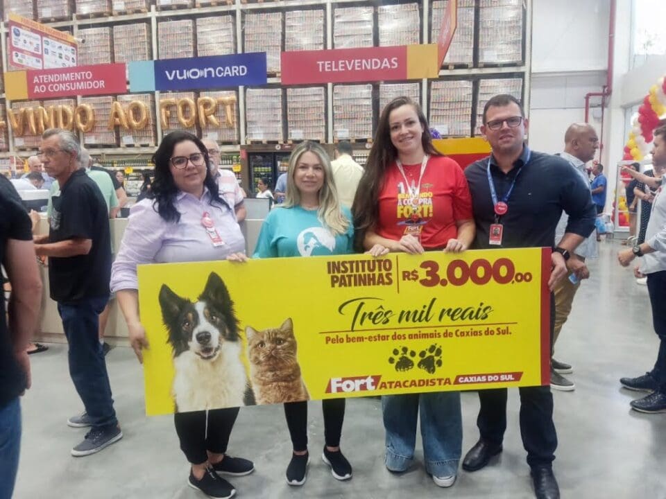O valor de R$ 3 mil corresponde ao que costumava ser investido antigamente na queima de fogos de artifício durante as inaugurações das lojas Fort Atacadista. O Grupo Pereira adotou nova postura há alguns anos, destinando esses recursos a ONGs voltadas à causa animal. “O Instituto Patinhas é uma ONG sem fins lucrativos fundada em 2021 e formada por voluntários que têm em comum o amor pelos animais”, conta a presidente Carla Natiele Gomes. Segundo ela, a entidade já resgatou mais de mil animais em situação de abandono, machucados ou maltratados, e atua fortemente em feiras de adoção. Em dois anos de trabalho, 800 animais ganharam um lar com o apoio da instituição. Como a instituição não possui sede física, os pets resgatados vão para lares temporários remunerados. Atualmente, 12 voluntários ajudam na organização do dia a dia da ONG e mais de 30 auxiliam nas feiras de adoção. “Nosso foco é ajudar animais em situação de risco. Por isso, temos sempre altos valores de clínica veterinária para pagar, e o dinheiro que recebemos do Fort Atacadista será usado para quitar as dívidas de clínicas veterinárias onde alguns animais que retiramos de maus-tratos estão internados”, destacou Carla, ao receber o cheque.