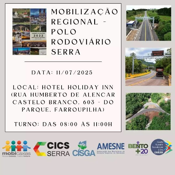 Nesta sexta-feira (11), das 8h às 11h no Holiday Inn Express, em Farroupilha , ocorre o Fórum Polo Rodoviário da Serra Gaúcha. O evento vai reunir autoridades, técnicos e lideranças para discutir concessões, obras, modelos de pedágio e os desafios das rodovias federais e estaduais que cortam a região serrana.