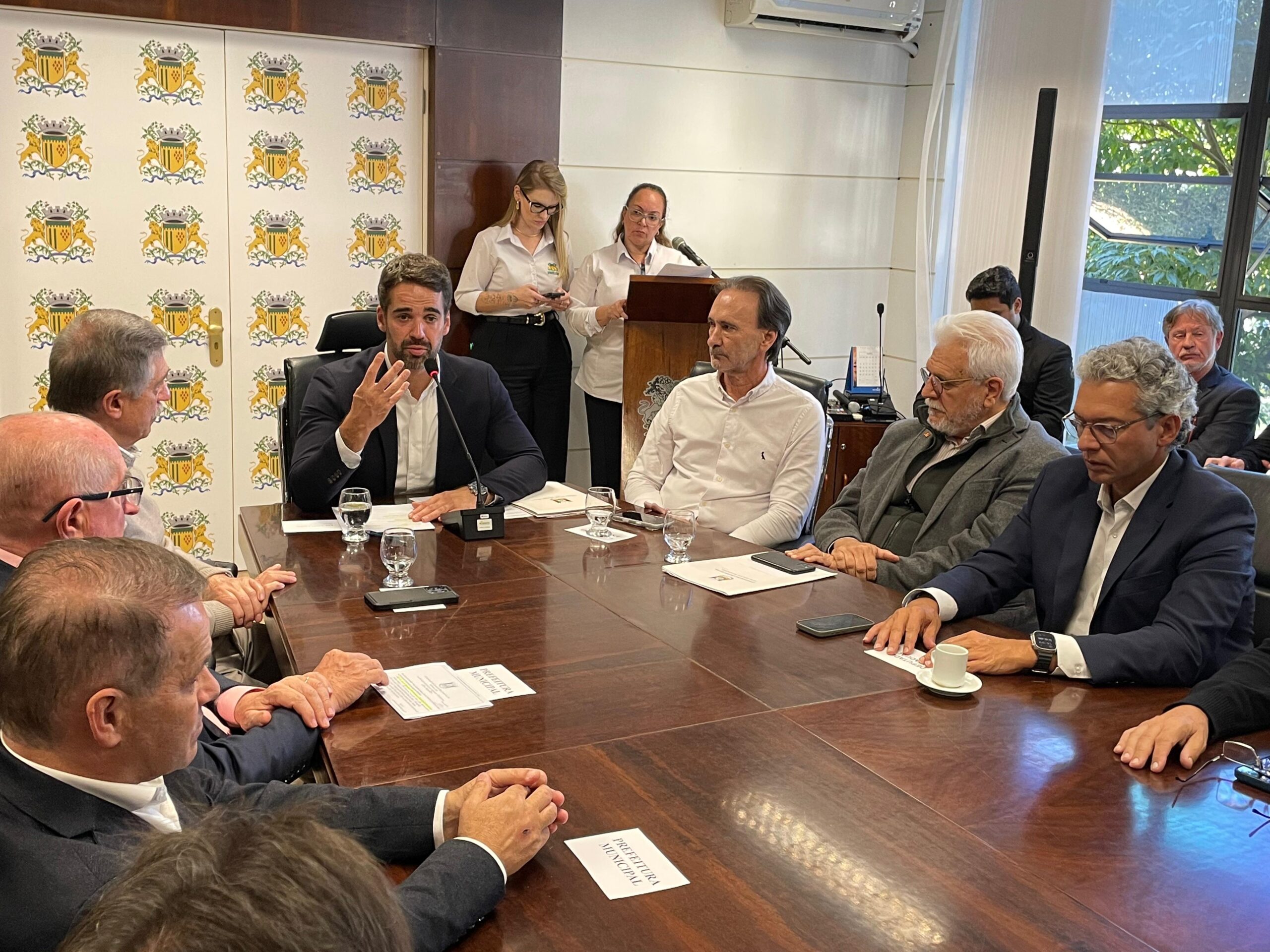 O governador Eduardo Leite cumpre agenda em Caxias do Sul nesta quinta-feira (30), com foco em investimentos em infraestrutura viária na Serra Gaúcha. A assinatura da ordem de início das obras em três importantes rodovias da região ocorreu na prefeitura de Caxias do Sul com a participação de deputados, prefeitos da região e demais autoridades.