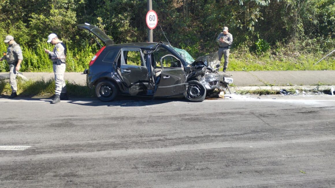 Um grave acidente na manhã desta quarta-feira (17), deixou uma idosa de 89 anos morta e outras cinco pessoas feridas na RSC-453, altura do quilômetro 5, no bairro Cinquentenário, em Caxias do Sul (no sentido Caxias do Sul-Farroupilha).