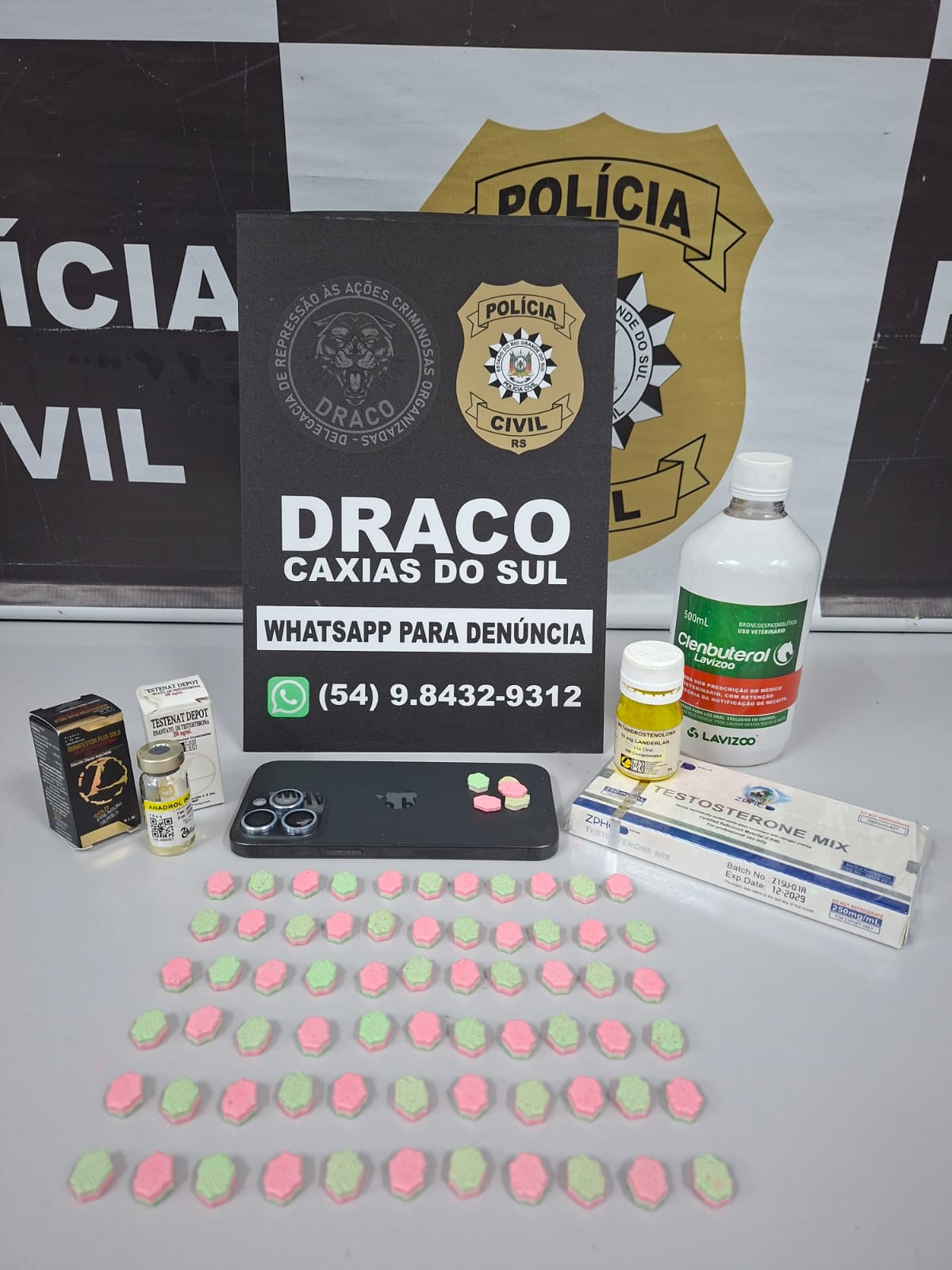 Na ação foram apreendidos 72 comprimidos de ecstasy e inúmeras ampolas de testosterona. O homem, que não possuía antecedentes criminais, foi conduzido ao sistema prisional, onde ficará a disposição da justiça.