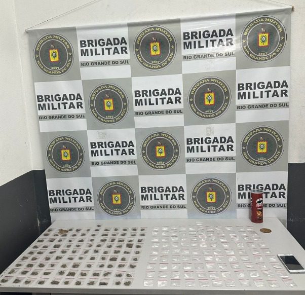 No total, foram apreendidas 100 porções de maconha, 100 porções de cocaína e um celular. O jovem foi encaminhado para a delegacia para os procedimentos legais.