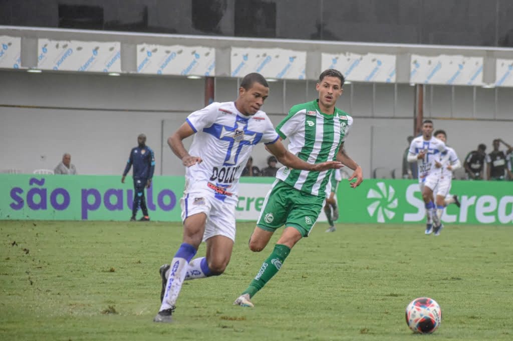 O confronto começou muito disputado e um lance isolado o Água Santa abriu o placar. Após cruzamento do lado direito de Dahora, Jonatas Santos pegou a sobra e concluiu na saída de Ronald. A resposta do Ju veio na sequência, com Tomi Montefiori batendo de primeira para firme defesa de Matheus Novaes. Aos 18, Tomi Montefiori deixou tudo igual no placar. O camisa 7 fez a jogada individual pela meia direita e soltou a bomba no cantinho do goleiro.