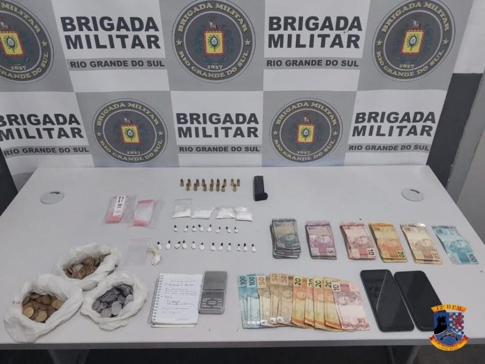Em meio às investigações, foram apreendidas porções de cocaína, uma balança de precisão, um caderno com registros de vendas, dinheiro e dois celulares. A parceira da vítima, presente no local, foi presa em flagrante pela Brigada Militar. Além disso, uma quantidade de entorpecentes foi encontrada com a detida. O homem atingido pelos disparos foi encaminhado para atendimento médico, apresentando ferimentos no peito e no braço.