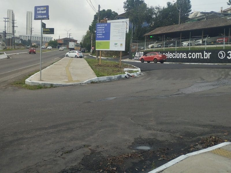 A demanda para a reformulação do acesso ao bairro Planalto pela comunidade existe há mais de 40 anos. Entretanto, as obras iniciaram em novembro de 2023 com a previsão inicial de conclusão em julho de 2024. Esta é a segunda empresa que rescinde o contrato, a primeira vencedora da licitação desistiu dos trabalhos. O investimento do município é de R$ 4,5 milhões, por meio de empréstimo com a Corporação Andina de Fomento (CAF).