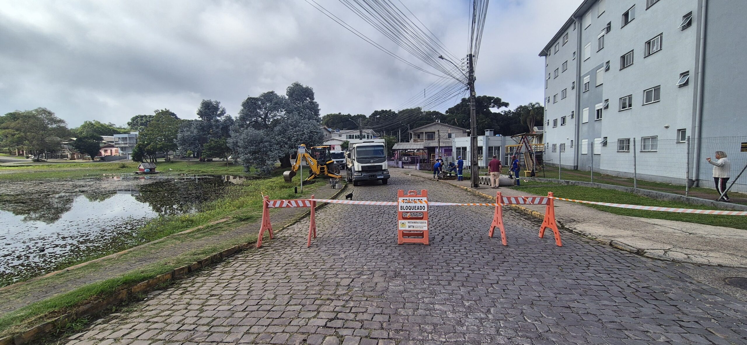 O bloqueio ocorre no Loteamento Jardim Embaixador, no trecho compreendido entre as ruas Wilson Antônio Vicioli e João Cemin. No local, equipes atuam em uma série de melhorias na estrutura de escoamento da água da chuva.