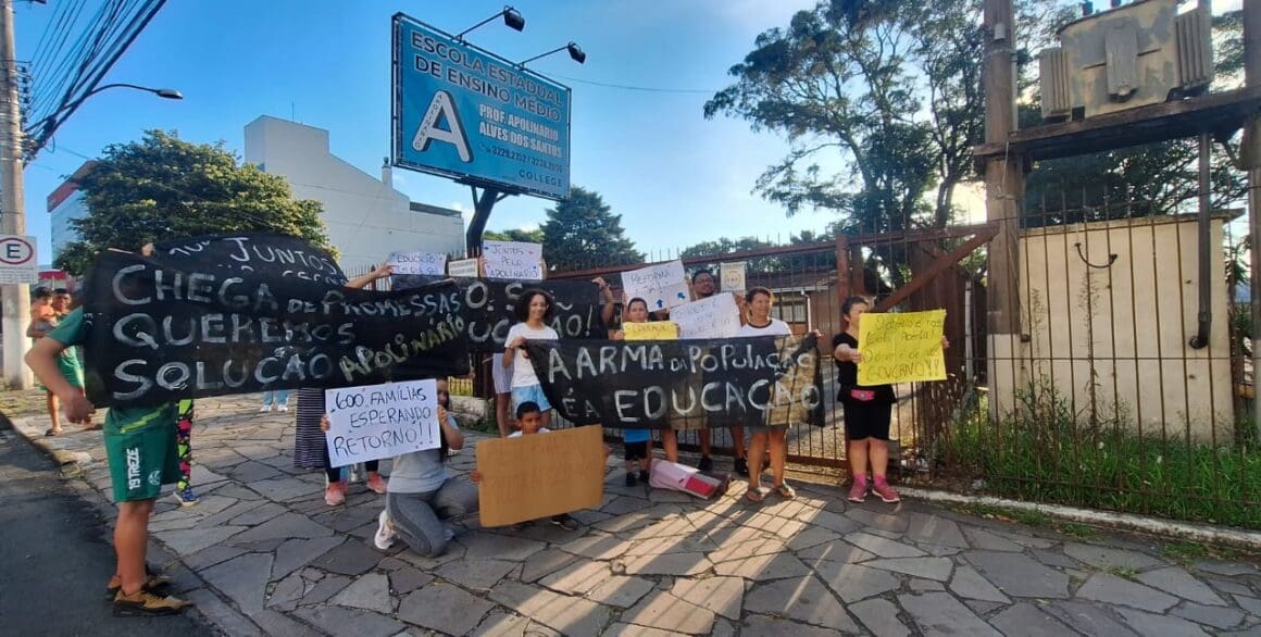 No final da tarde desta sexta-feira (23), pais de estudantes da Escola Estadual Apolinário Alves dos Santos, no bairro Sagrada Família, realizaram um protesto, reivindicando a reformado do local, a fim de que eles retornem às aulas. A escola está interditada desde 8 de dezembro com problemas na rede elétrica. No mesmo mês, havia a previsão de que a situação fosse resolvida antes do início do ano letivo, o que não ocorreu.