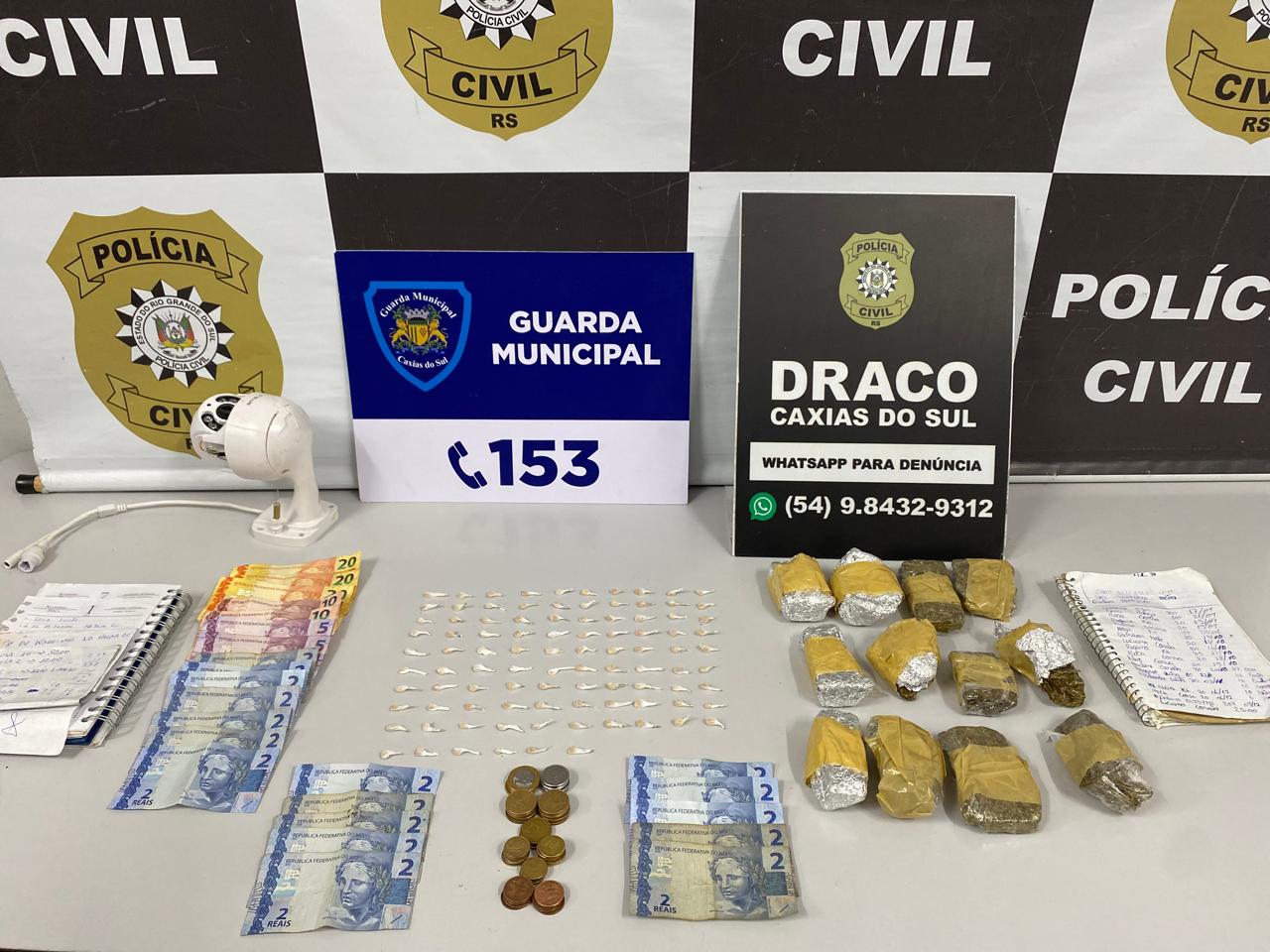 Uma ação conjunta entre a Delegacia de Repressão às Ações Criminosas Organizadas (DRACO) da Polícia Civil e a Guarda Municipal resultou na prisão em flagrante de dois homens por tráfico de drogas, na tarde de sexta-feira (4). Os suspeitos, de 44 e 45 anos, já possuíam antecedentes por crimes como ameaça, lesão corporal, posse de drogas e porte ilegal de arma de fogo.