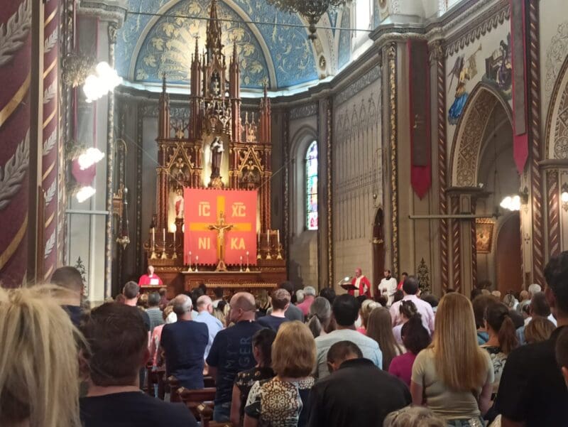A multidão se reuniu após a procissão, em frete a Catedral, para ouvir a homilia de Dom José Gislon, que falou sobre fé, amor e oração com Cristo.