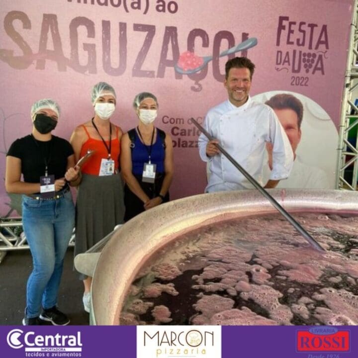 Para fechar com chave de ouro o espaço voltado para os distritos, a boa gastronomia marca presença e convida todos a ficar em volta da farta mesa. De Vila Cristina, Remi do Basso trabalha na preparação da polenta brustolada com salame e do pão caseiro no forno de barro e conta a experiência das pessoas ao degustar o alimento.