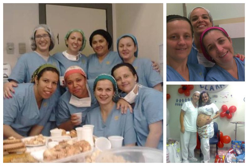 Na imagem: Do lado esquerdo para a direita, Taíse é a que está no conta direito (1ª foto), a 1ª que está no canto superior (2ª foto/topo); e grávida (chá de fralda). Fotos: Arquivo Pessoal