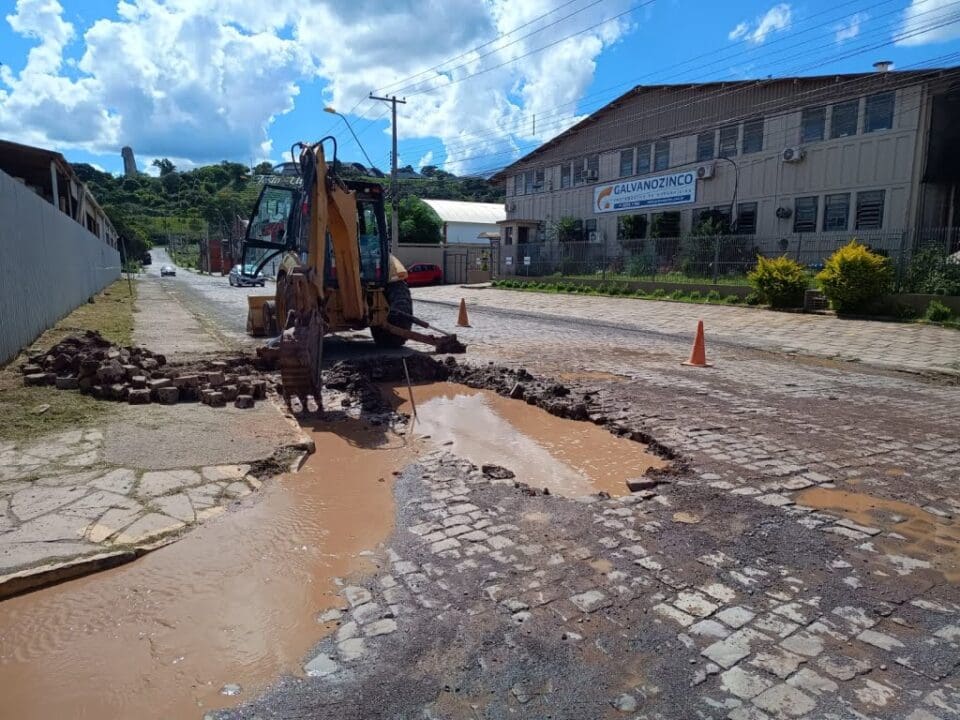 Rompimento de adutora na rua Evaristo de Antoni causa falta d’água em bairros da região noroeste