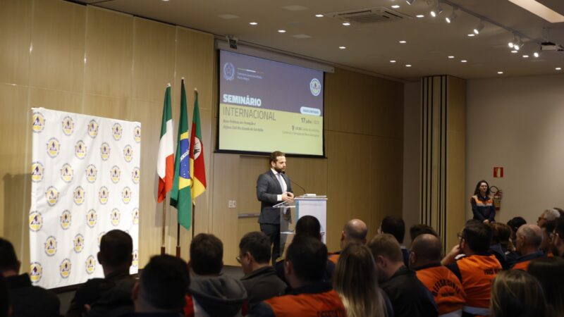 Promovido pelo Consulado-Geral da Itália no estado, o Seminário Internacional de Boas Práticas em Proteção e Defesa Civil Rio Grande do Sul-Itália, recebeu centenas de especialistas da área nesta quinta-feira (17). O seminário ocorreu no auditório do Centro de Indústria, Comércio e Serviços (CIC) de Bento Gonçalves, contando com palestras de referências italianas no tema, que compartilharam experiências sobre elaboração de planos de emergência, desenvolvimento de estratégias de mitigação de riscos, gestão de emergências, operações de resgate, entre outros assuntos.