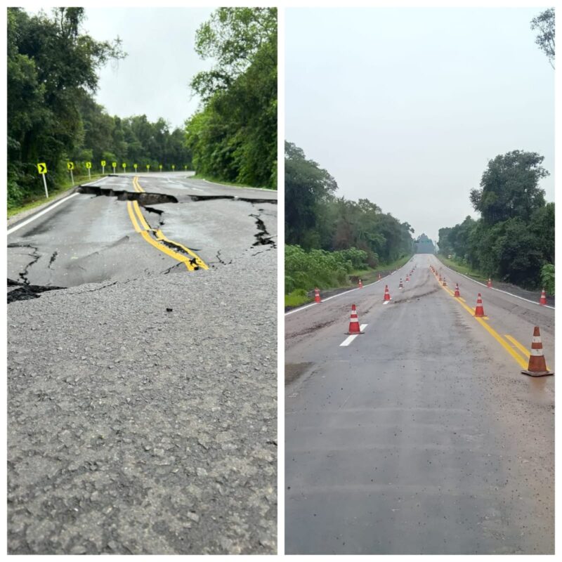 O ponto entre o km 39 e o 51 estava completamente bloqueado desde as 13h do dia 30 de abril, quando ocorreram deslizamentos de encostas, desmoronamentos e afundamentos de pista em diversos trechos da rodovia devido às fortes chuvas registradas na maior catástrofe climática na história do Rio Grande do Sul. As equipes da CSG trabalharam no local e seguem atuando em obras que ainda se fazem necessárias, porém, a trafegabilidade, principal objetivo da companhia nesse momento, foi recuperada.
