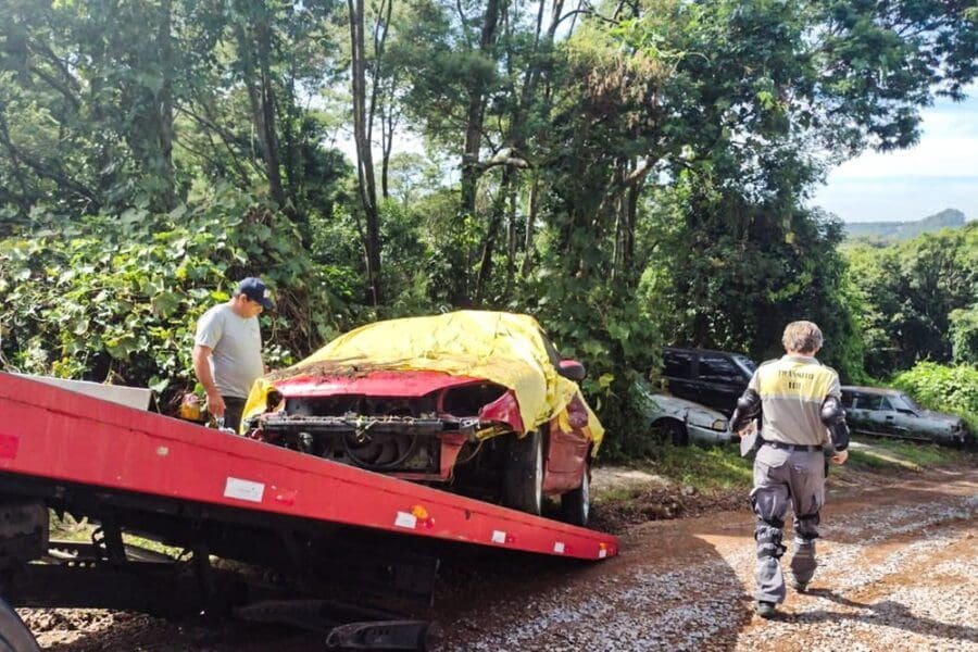 A Prefeitura de Caxias do Sul informa que servidores da Fiscalização de Trânsito e da Guarda Municipal recolheram veículos que estavam abandonados no bairro São Cristóvão na tarde desta sexta-feira (23/02). Os veículos se encontravam em estado de abandono, muitos dos quais sem emplacamento, e permaneciam às margens da rua Abramo Perondi. Alguns dos veículos estavam em meio a área verde e acumulavam água parada, contribuindo para a proliferação do mosquito Aedes aegypti, transmissor da dengue.